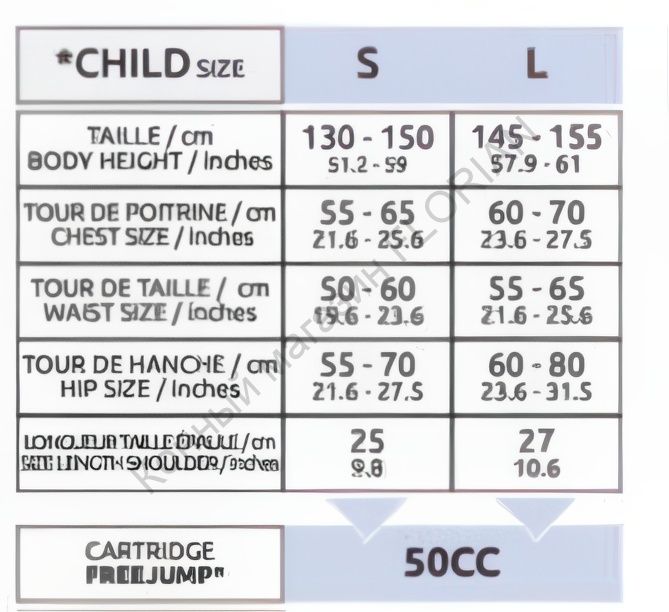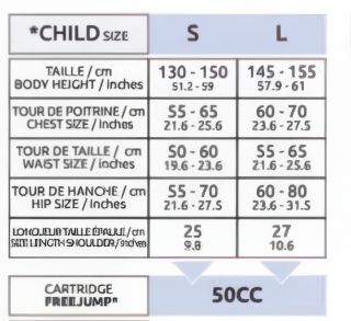 Детские размеры S и L подходят детям весом не менее 25 кг и ростом не менее 130 см. Жилет FREEJUMP AIRBAG размером от XXS подходит для людей ростом не менее 1 м 45 см и весом не менее 35 кг.