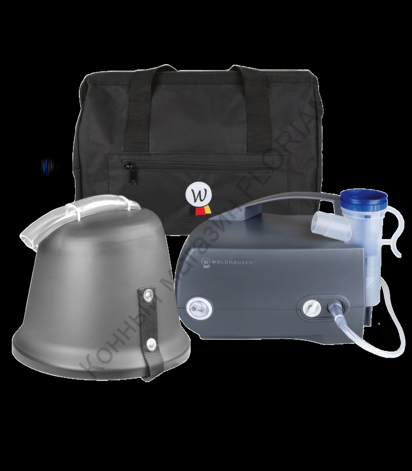 Портативный, многоразовый, бесшумный небулайзер для лошадей, предназначенный для подачи аэрозольных препаратов и средств натуральной терапии в дыхательные пути лошадей.