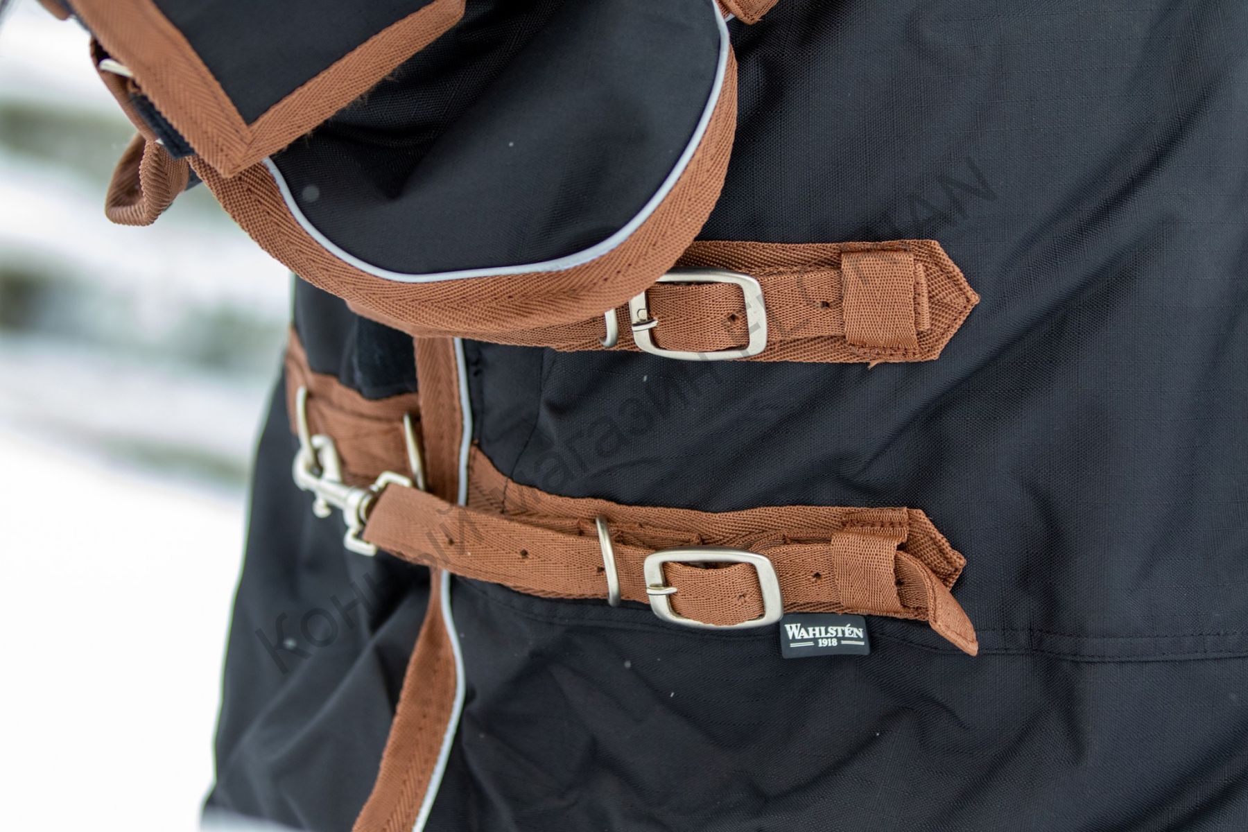 Верх - водонепроницаемая ткань RIP-STOP плотностью 600 ден. Защитит вашу лошадь от дождя и ветра. Утеплитель из тинсулейта плотностью 100 г/м защитит от холода. Подкладка из нейлона.