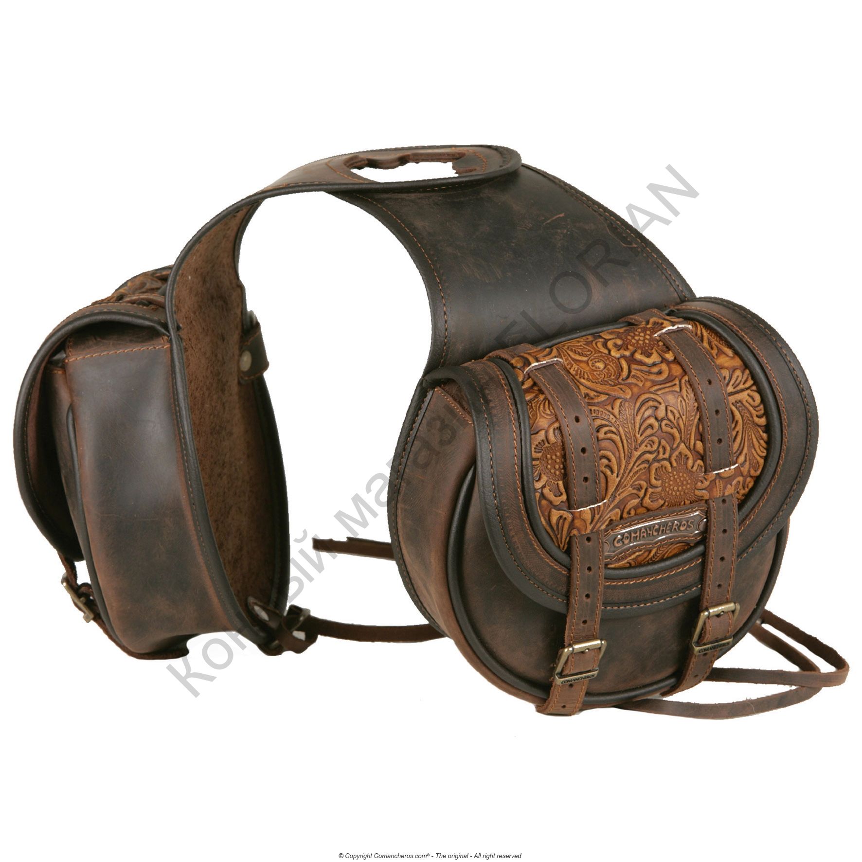Передние седельные сумки из качественной кожи с тиснением. Вешаются на рычаг на передней луке седла.