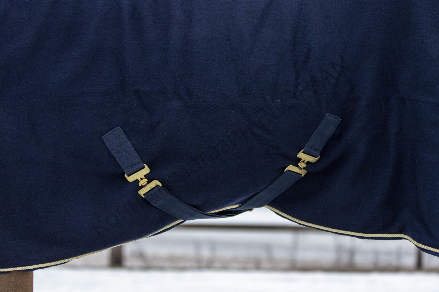 Добавление в состав ткани синтетики сделало эту попону более износостойкой и легче поддающейся стирке.