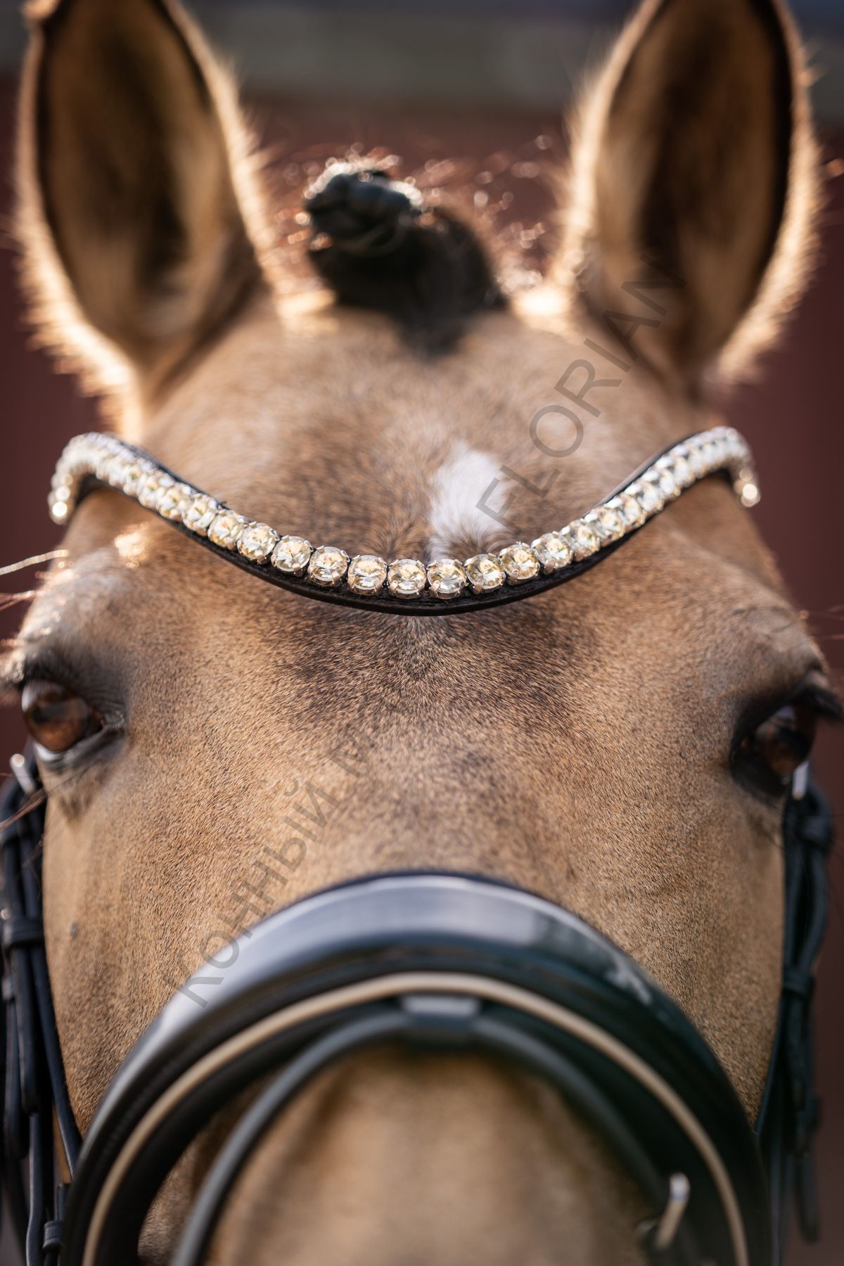 - Изогнутый налобный ребень, декорированный стразами