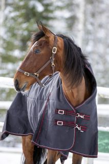 Зимняя непромокаемая прогулочная попона с утеплителем, высокой шеей, шагом, запахом, нахвостником, застежками спереди, под животом лошади, задними ногами.
