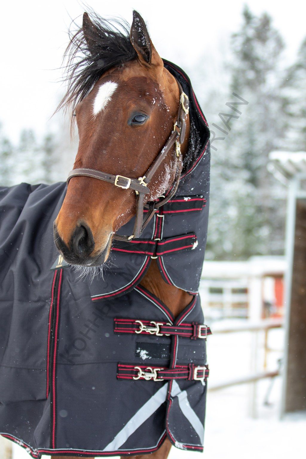 Зимняя непромокаемая дождевая попона сполной шеей, шагом, запахом, нахвостником, застежками спереди, под животом лошади, задними ногами.